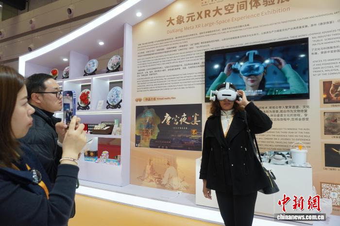 图为中宾领悟唐宫夜宴XR年夜空间沉迷铺。中新社记者 韩章云 摄