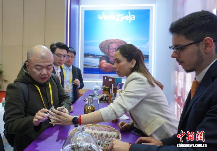 图为贵宾领会委内乱瑞推特产。中新社记者 韩章云 摄